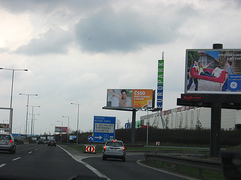 Maďarsko / okolí Budapešti (M0, M5): přímo u silnic a dálnic nejsou žádné billboardy ani jiné reklamy (vyjma dopravně-výchovných), zhruba 100 m od dálnic se občas nějaký billboard objeví (většinou směrovky k obchodům nebo firmám)